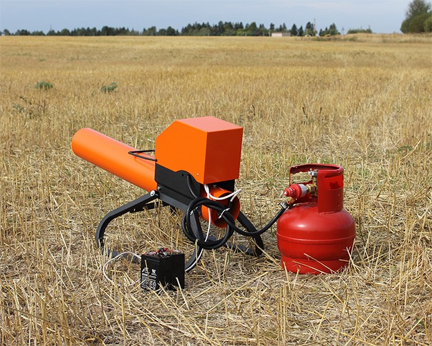 - Экономное потребление газа. Устройство потребляет газ очень экономно — 10 кг пропана хватает на 17 тысяч выстрелов. При интервале 30 минут пушка сможет работать от одного баллона 27 л почти целый год.